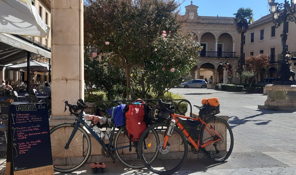 L'étape d'hier nous avait conduites du bord de mer d' Almeria, à Arbucena à 1000m d'altitude , itinéraire komoot impeccable. Une cinquantaine de km tout en montée par une route superbe, toute neuve bordée de pins à travers un désert de collines ravinées, à la végétation rabougrie quasi brûlée par la sécheresse. Quelques km de plat et un dernier raidillon de 2 km nous ont amenées depuis Abla à ce petit village accroché dans des pentes du piémont de la Sierra Nevada.