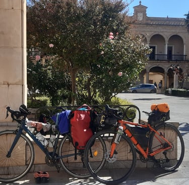 Guadix était jusque là un nom sur une carte, un endroit pas particulièrement intéressant. Nous avons découvert avec bonheur une jolie ville pleine de charme où Zelda s'est baladée en petit train touristique et est revenue enchantée d'avoir visité la ville troglodyte. Pour ma part, un peu fatiguée et grippée j'ai pris le prétexte de surveiller les vélos pour lézarder en terrasse sur une jolie place du centre-ville. Ce soir nous nous offrons une halte de luxe dans un hôtel thermal à Los Banos . Piscine deau chaude, bain de vapeur...